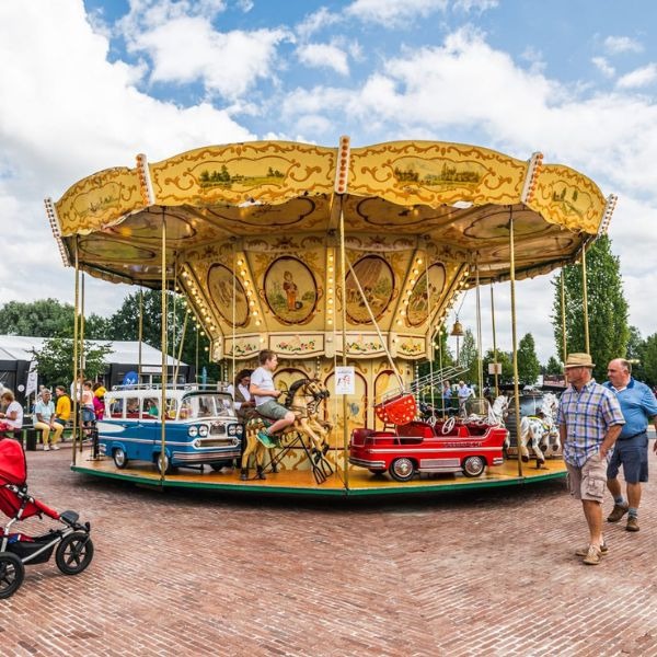 De draaimolen is inzetbaar op bedrijfsfeesten, familiedagen, festivals, braderieën, winkelcentra en open dagen—overal waar sfeer, nostalgie en beleving centraal staan.