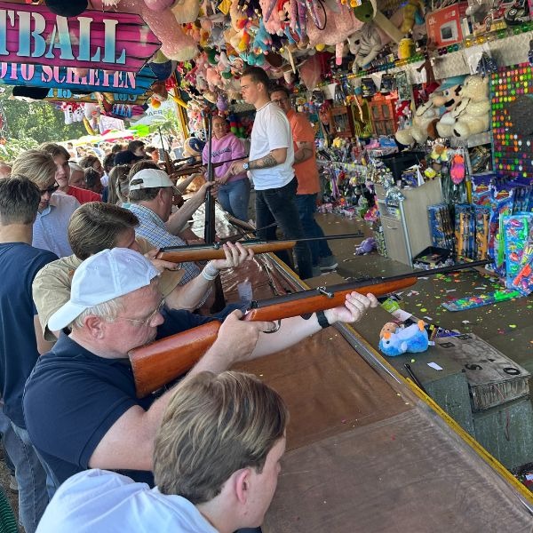 Deelnemers nemen het tegen elkaar op in precisie en snelheid, terwijl het publiek aanmoedigt en geniet van de sfeer. Met een mix van nostalgisch kermisgevoel en moderne uitvoering is de Schiettent een gegarandeerd succes voor jong en oud. Prijzen winnen maakt het extra leuk: wie gaat er met de hoofdprijs vandoor?